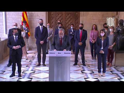 During his address, Torra was accompanied by his government’s ministers, including vice president Pere Aragonès, who is expected to act as an interim president until Catalans head to the polls.