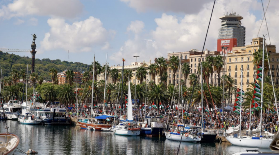 Around 20 vessels left the port of Barcelona in Sunday aiming to ‘open a humanitarian corridor and end the ongoing genocide of the Palestinian people’ amid the Israel-Hamas war, said the Global Sumud Flotilla (see original report below).
