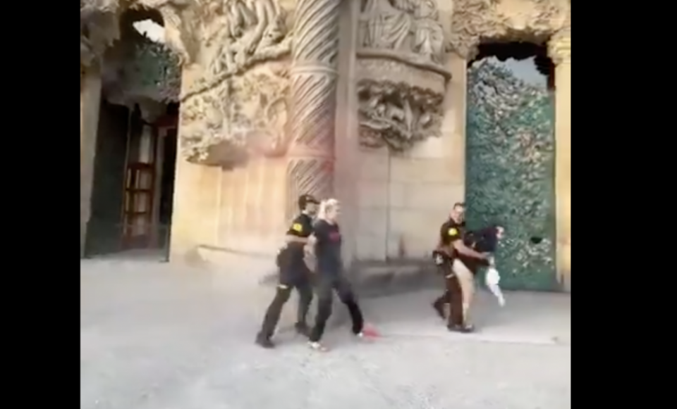 Activistas de Futuro Vegetal lanzan tintes contra la fachada de la Basílica de la Sagrada Familia y exigen medidas contra el cambio climático en respuesta a los incendios de este verano https://t.co/aY0yum1ve5 pic.twitter.com/sa7JeCVtrX