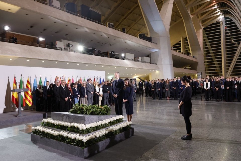 King Felipe VI presided over a national memorial ceremony in Valencia, joined by relatives of the victims who died when torrential rain submerged large parts of eastern Spain on the night of 29 October 2024.