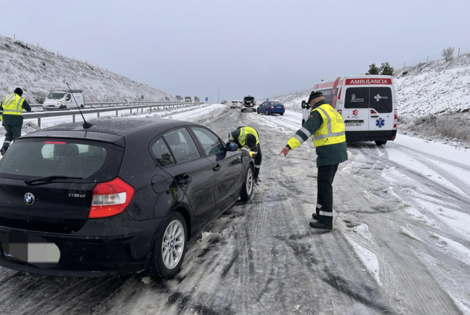 By 7pm on Wednesday, snow was affecting 102 roads nationwide, three of them on main highways – particularly the A-6 (Madrid-A Coruña) – although traffic was still possible with caution, according to the traffic authority (DGT), which urged people to avoid driving unless absolutely necessary.